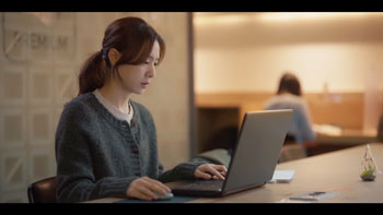 ウンガン(ソ・ジヘ)が部屋で裁判の答弁書を書こうとしているとウンサンが部屋に入ってきました。ウンガンは思わずノートパソコンを閉じます。