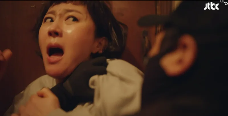 ヨンミが玄関を開けると男が飛び込んで来てヨンミを襲いました。
